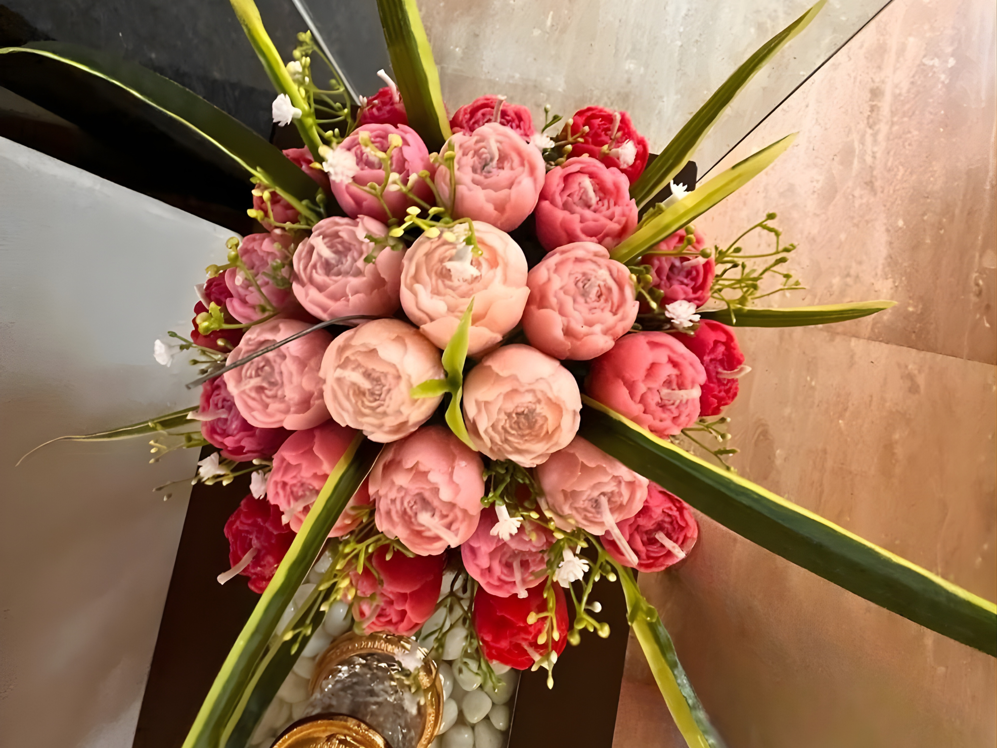 Experience the flawless blend of lifelike floral beauty and the warm charm of candlelight with this flower bouquet candle that turns any moment into something special. Curated as a glowing centrepiece, this bouquet is fully customizable, allowing you to create a piece that reflects your story, your mood, or the sentiment behind your gift.
